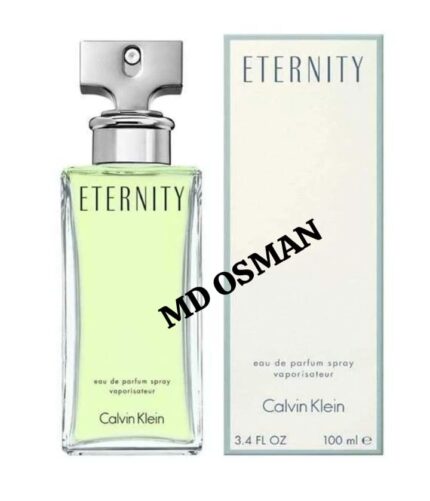 The image displays a Calvin Klein Eternity Eau de Parfum spray for women, a classic floral fragrance.