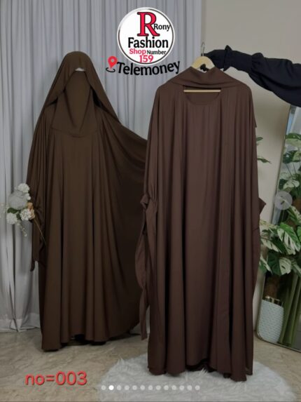Rony Fashion French Khimar & Abaya Set (No. 003) – Premium Flowy Niqab-Style Modest Hijab Outfit