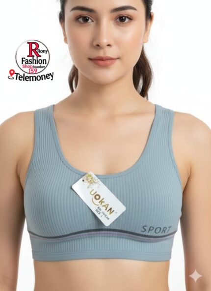 UOKAN Seamless Ribbed Sports Bra with “SPORT” Lettering