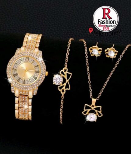6PCS Set Luxury Watch Women Ring Necklace Earrings Rhinestone Fashion Wristwatch Female Casual Ladies Watches Bracelet Set