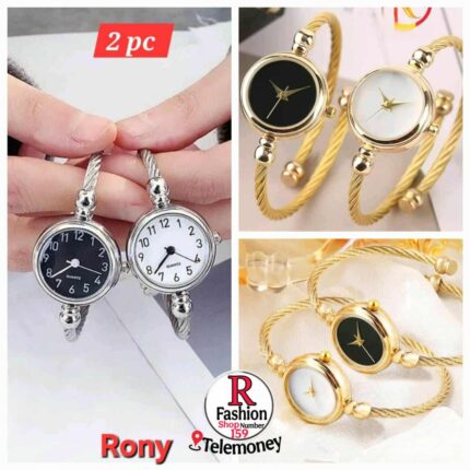 Luxury Women’s Gold and Silver Twisted Bangle Bracelet Watch Set
