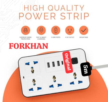 High-Quality 5m Power Strip with 4 AC Outlets & 4 Fast Charging USB Ports