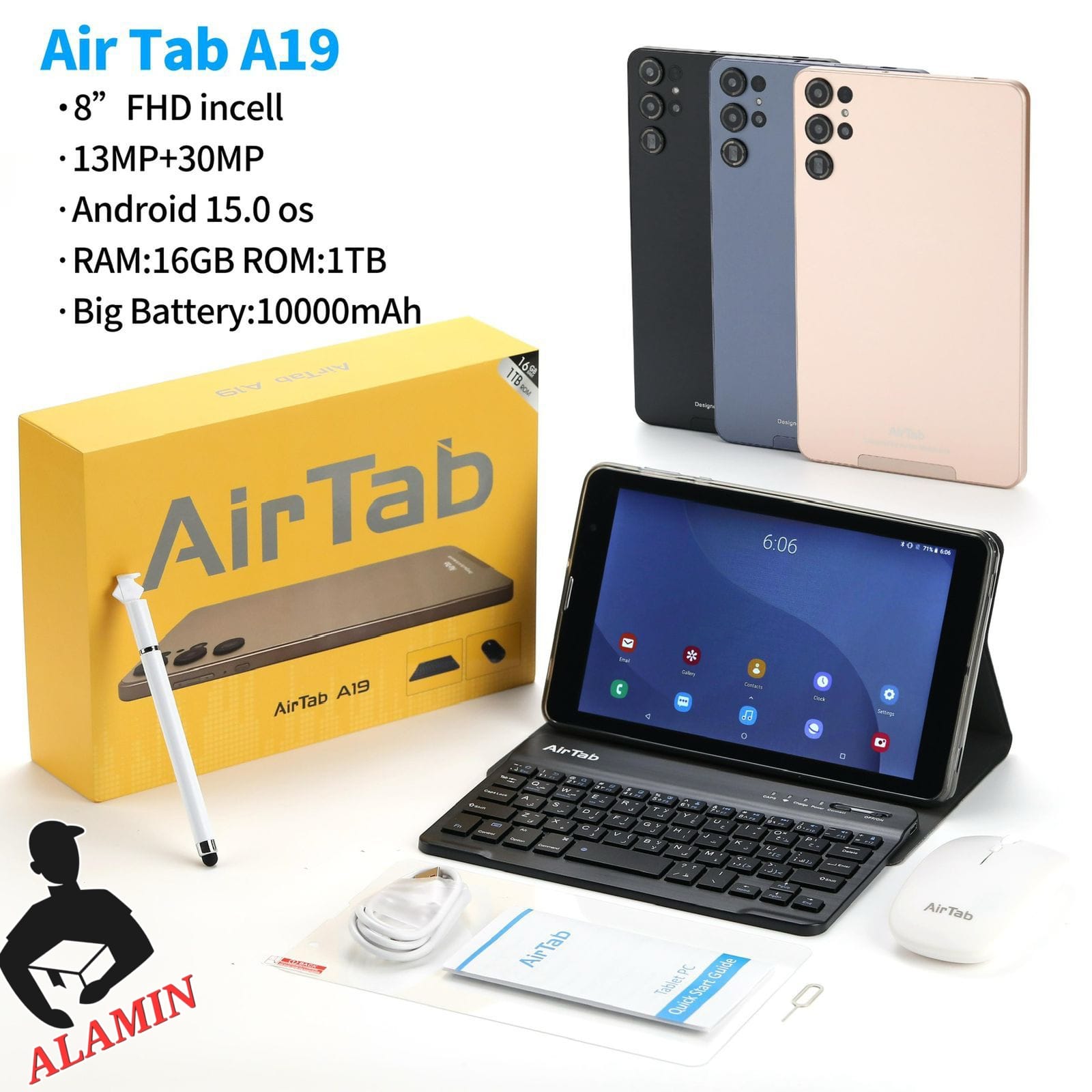 Air Tab A19 Tablet, 8-inch FHD Display, 2GB RAM 32GB ROM, 10000mAh Battery, Android 15.0, 13MP+30MP Camera