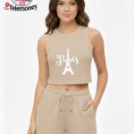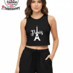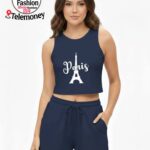 FASHION AND YOUTH Stylish Paris France Design Printed Round Neck Women Rib Top