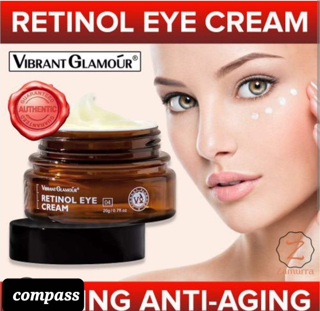 VIBRANT GLAMOUR Retinol Eye Cream Dark Circles Fade Fine Lines Remove Eye Bags Anti Wrinkle Anti Aging Firming Brighten Skin 20g