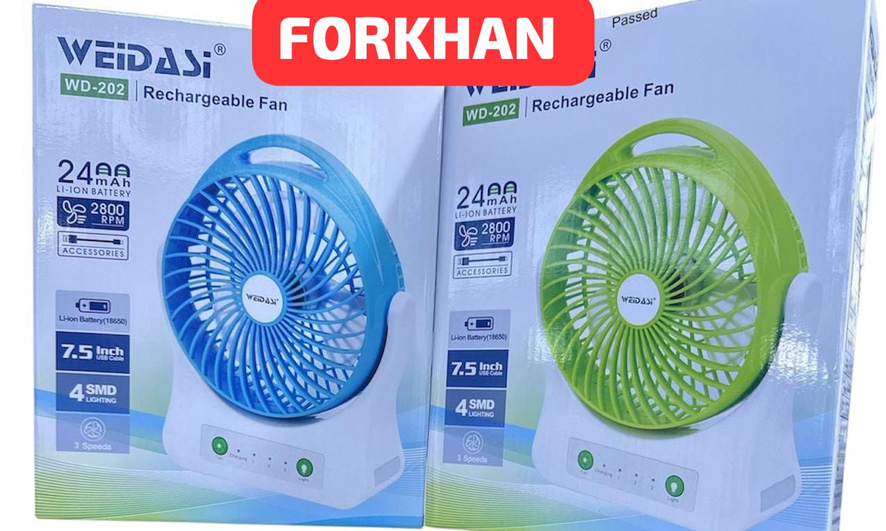 Be the first to review “WEIDASI WD-202 Rechargeable 2400mAh Lithium Battery Up-Down Adjustable Desk Fan With LED Light” Cancel reply